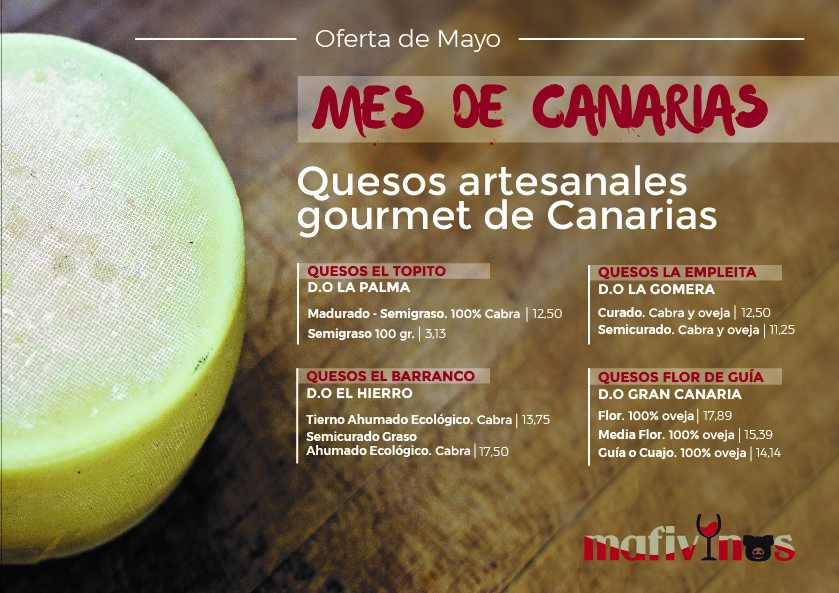 Sólo por este mes Mafivinos oferta los mejores quesos de Canarias, elaborados al 100% de forma artesanal.